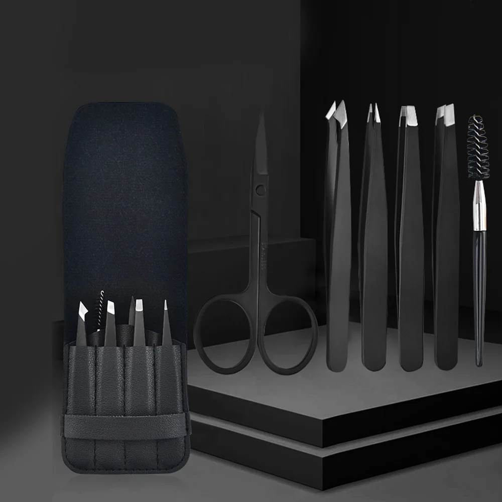 Name: Juego de pinzas profesionales de acero inoxidable para cejas, 6 piezas, herramienta inclinada para el cabello, Clip para ceja, pegatinas con estuche, juego de herramientas de maquillaje