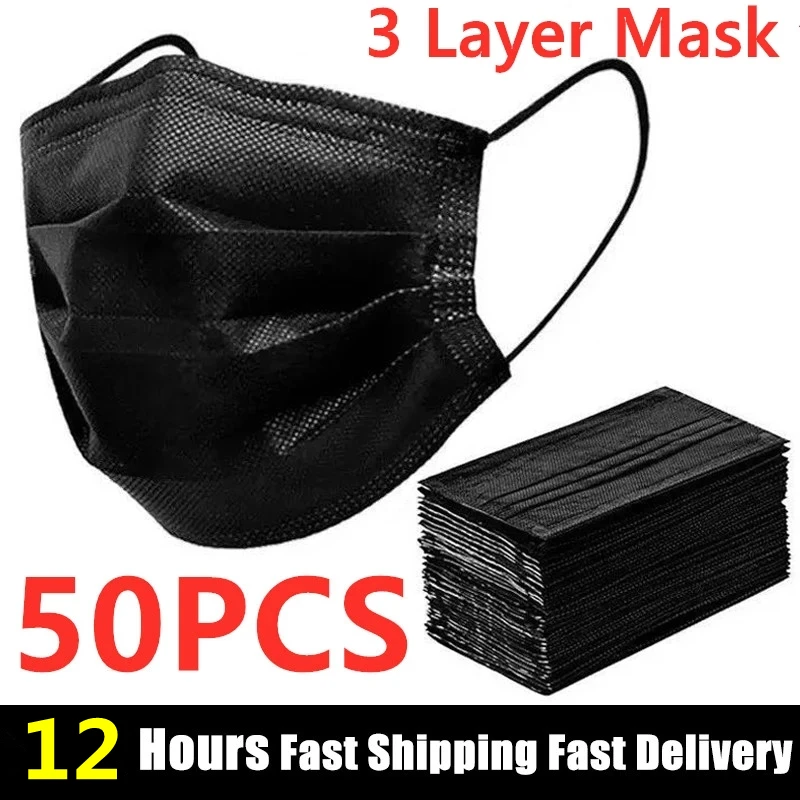 Name: En Stock 10/50 Uds desechable máscara cara máscara negro no tejida 3 capas máscara de boca filtro Anti polvo transpirable protección máscaras de adulto